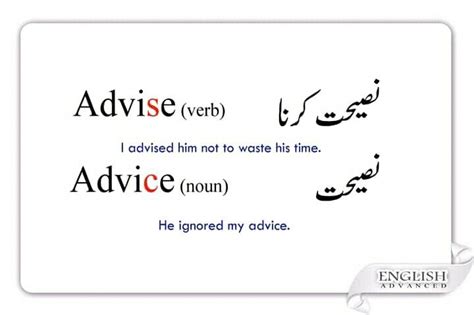 advise vs advice meaning in urdu with examples